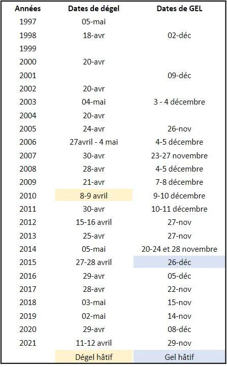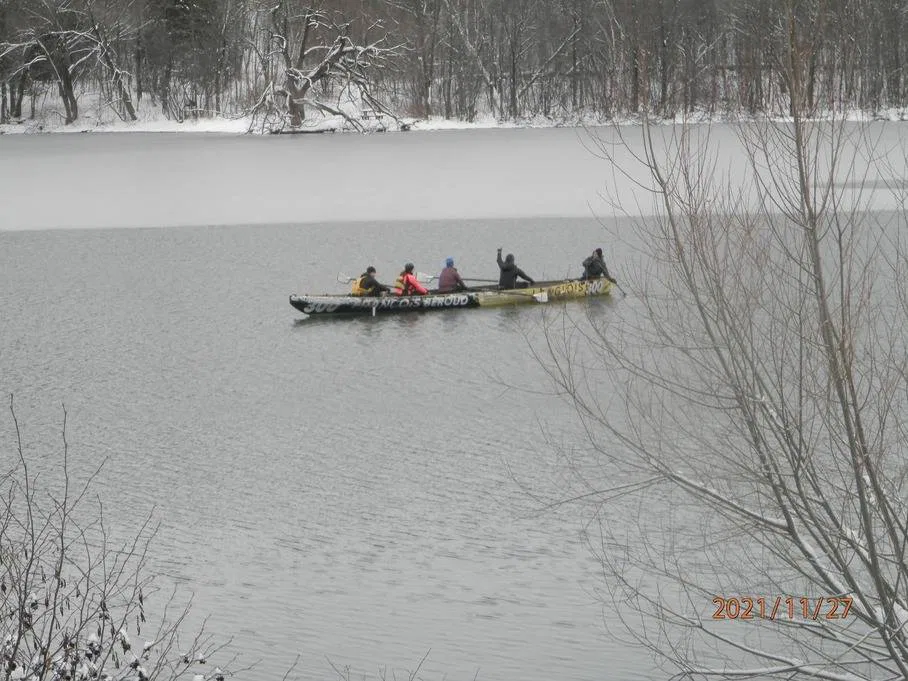 Le lac Saint-Augustin a gelé entièrement le 29 novembre dernier, une date qui est dans la moyenne selon les registres tenus par nos bénévoles depuis plus de 20 ans. Selon nos registres, la date la plus tardive de gel du lac était le 26 décembre 2015. La veille, quelques riverains se sont rassemblés en kayac sur le lac !