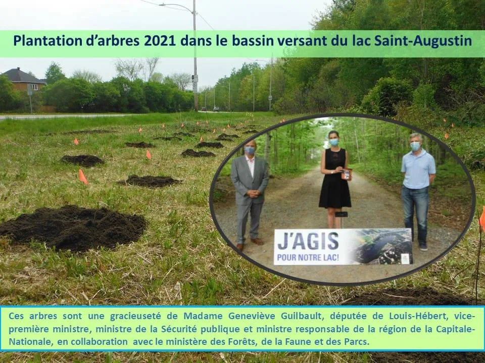 Mois de l’arbre En mai, quarante arbres forestiers ont été plantés dans le bassin versant du lac Saint-Augustin, afin de prolonger la forêt de son parc Riverain. Merci à toutes et à tous les participant-es