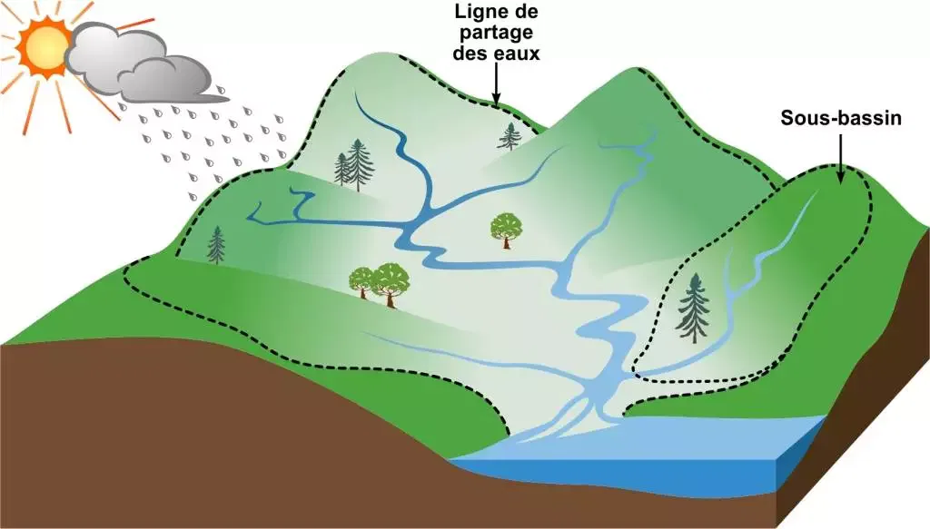 Un bassin versant correspond au territoire sur lequel toutes les eaux s’écoulent ou “versent” vers un même plan d’eau. Cet écosystème inclut autant les eaux de surface que les eaux souterraines.