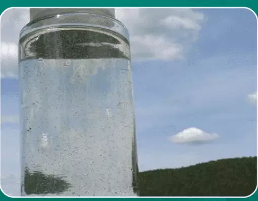 CATÉGORIE 1 : Elle se caractérise par une faible densité d’algues bleu-vert qui sont réparties de façon clairsemée dans la colonne d’eau. Les amas flottant entre deux eaux sont éloignés les uns des autres. L’apparence de l’eau est trouble mais non opaque.