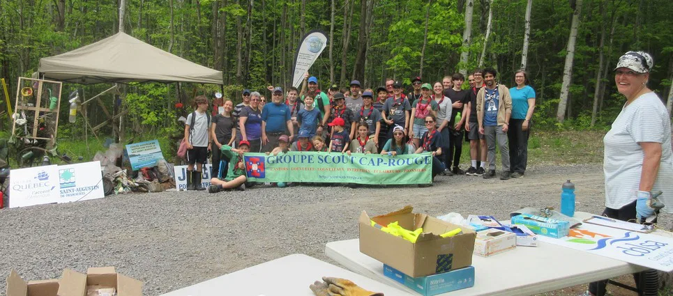 Cette année, la corvée se déroulait en collaboration avec le groupe Scout de Cap-Rouge. On se rassemblait en après-midi le samedi 27 mai, au parc Riverain, où des des sacs et des contenants usagés étaient à la disposition des participants pour la récolte des déchets dans les sentiers du parc.